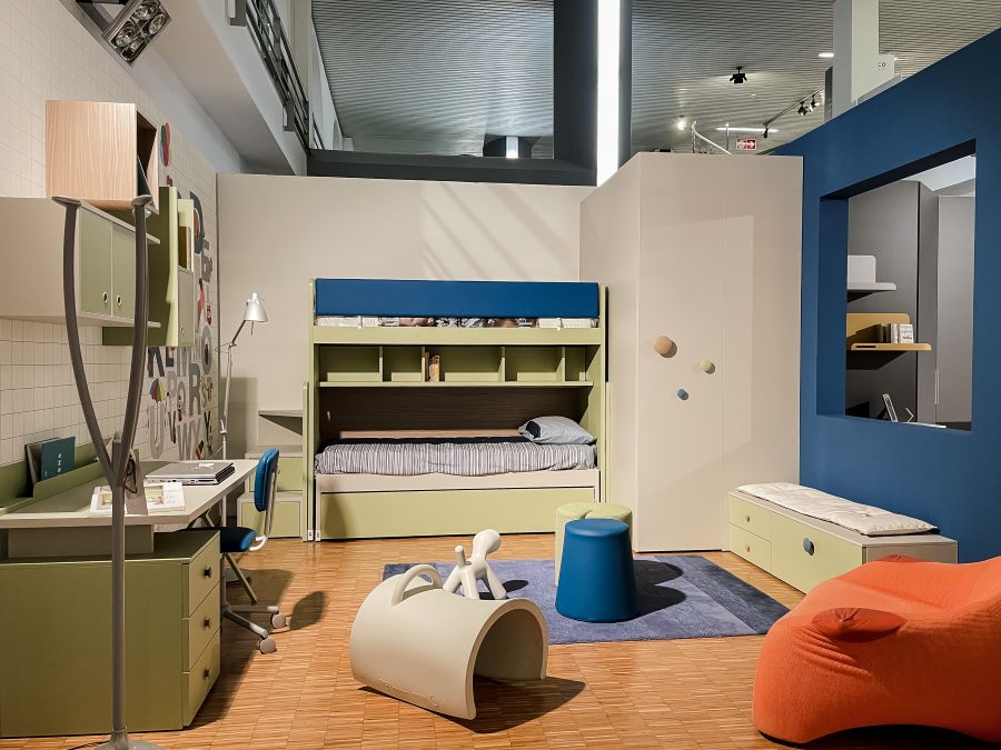 La cameretta con il letto a castello Nidi è la soluzione ideale per chi cerca funzionalità e design in un unico spazio. I colori principali, canapa, pistacchio e nocciolo, donano un’atmosfera calda e accogliente, perfetta per stimolare la creatività dei più piccoli.