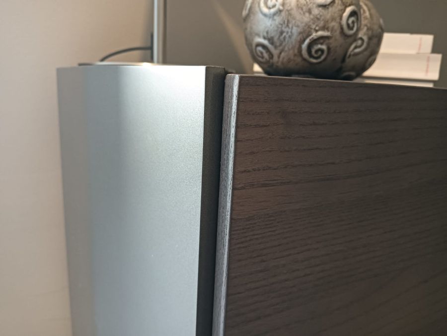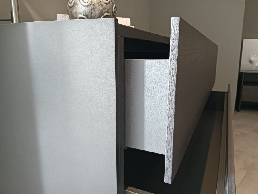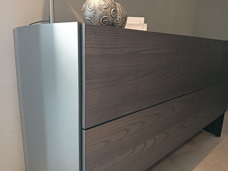 La struttura del comò è solida e robusta, grazie all’uso combinato di legno e alluminio, materiali che garantiscono durabilità nel tempo. I cassetti sono rivestiti in nobilitato primo fiore, offrendo una sensazione tattile piacevole e una resistenza superiore all’usura quotidiana.